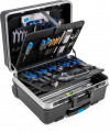 Popoln potovalni sopotnik: Praktičen teleskopski ročaj in gladko tekoči vodljivi kolesi vam omogočata, da vzamete vsa svoja orodja s seboj in jih uporabljate kjerkoli. Ergonomski ročaj zagotavlja udobno nošenje na krajših razdaljah. Kovček za orodje GO ima varnostno držalo pokrova, ki zagotavlja enostaven dostop do orodij.
