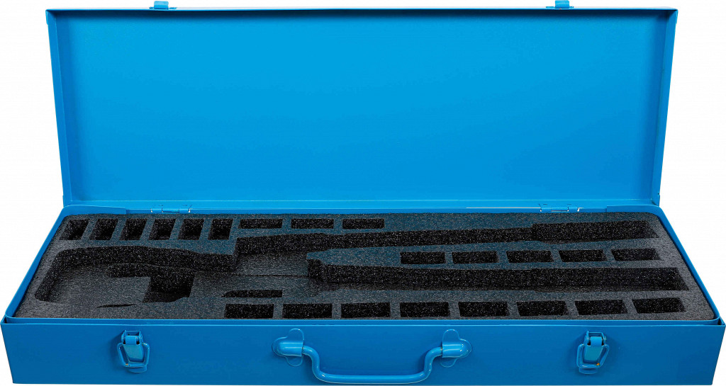 Nadomestno kovinsko ohišje za komplet BGS 9573 z vložkom iz visoko odporne pene, orodja so zaščitena in razporejena na svojih mestih, vsak kos ima svoje mesto.