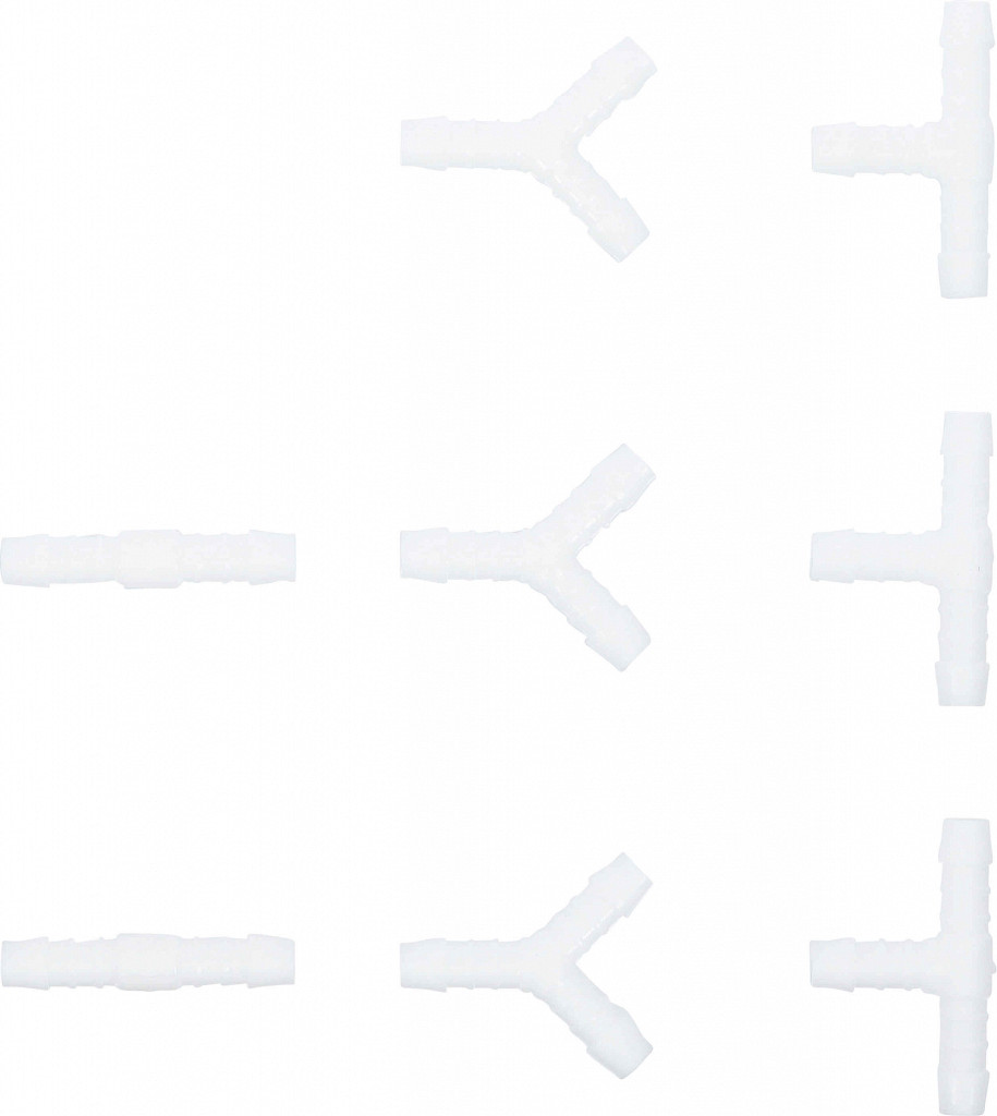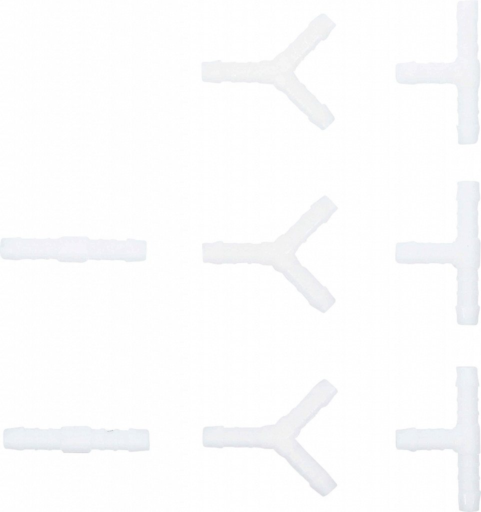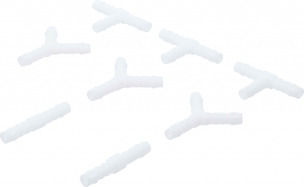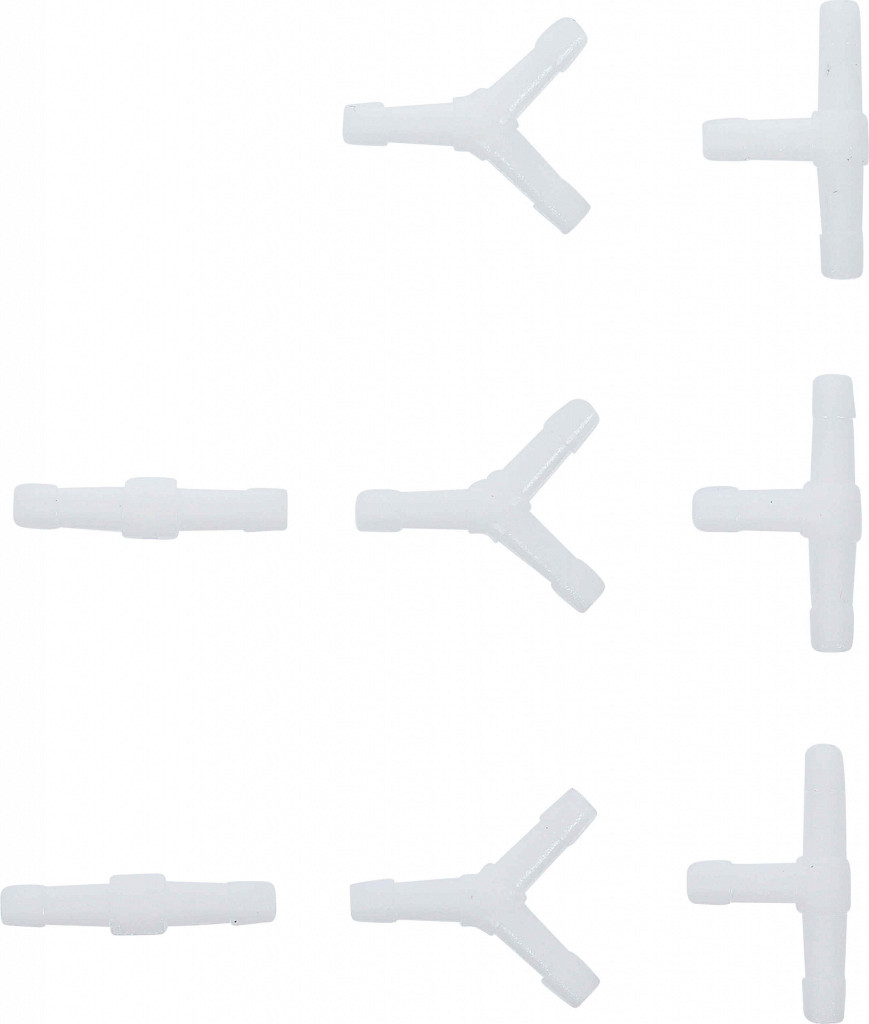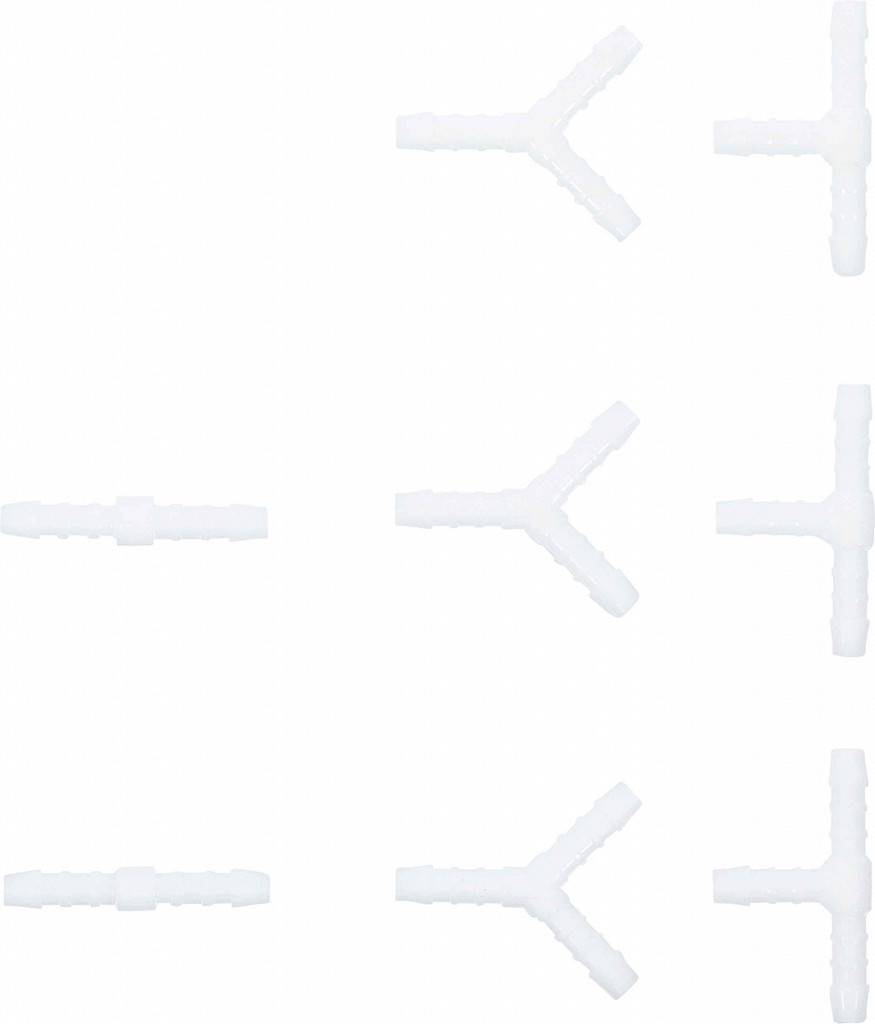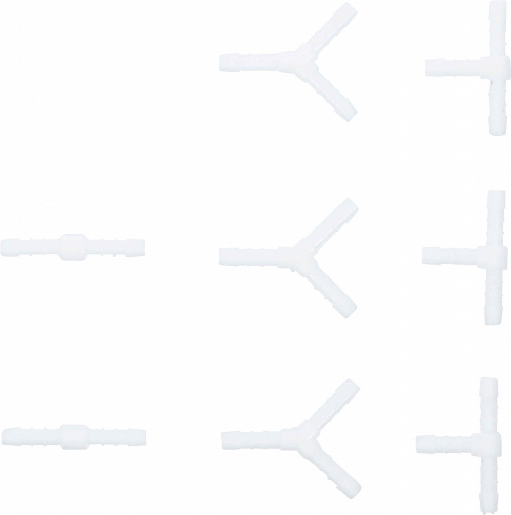 Priključni set za plastične in gumijaste cevi, za notranji premer 10 mm, izdelano iz gorivu odpornega POM materiala, obseg dobave: 2x I-priključek, 3x...