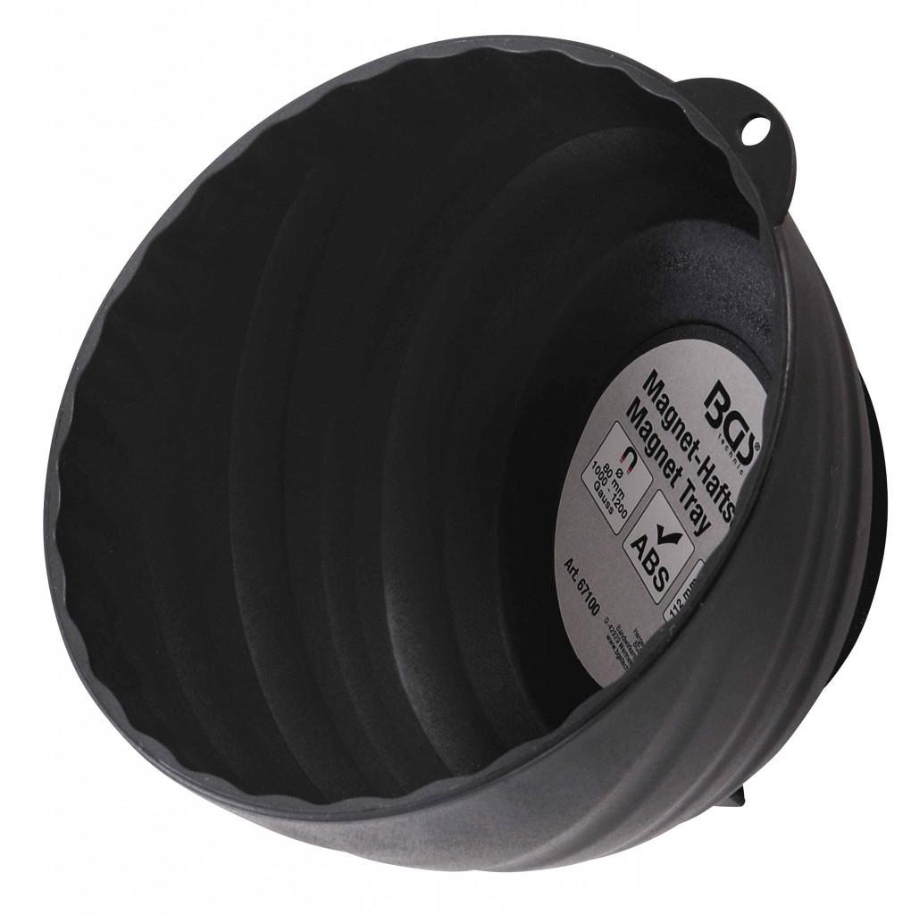 Magnetna posoda s posebno obdelavo površine za shranjevanje tudi večjih orodij in delov. Zelo močan magnet, guma proti praskam.