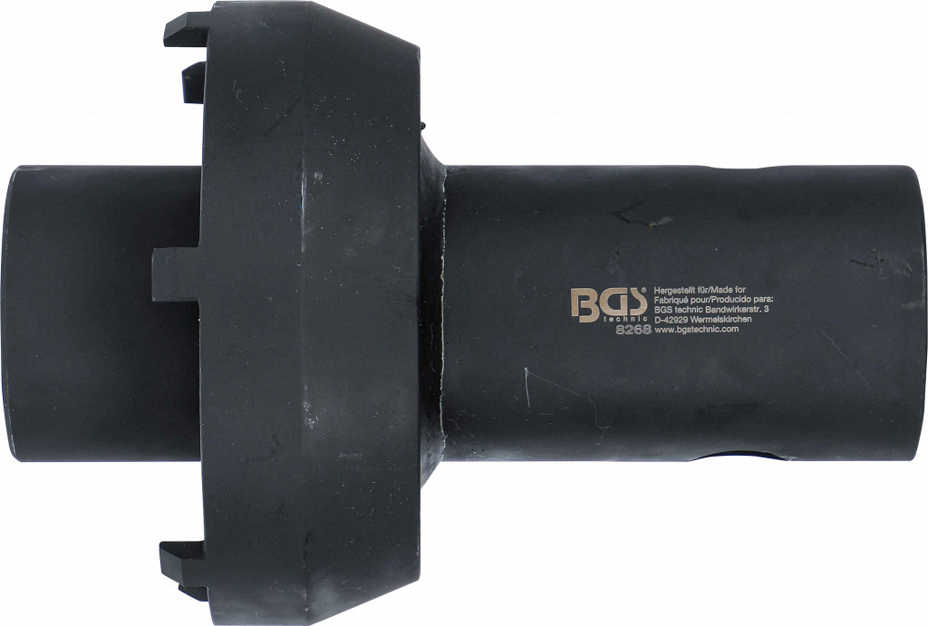 Posebno orodje za zadnje preme Mercedes-Benz Actros HL/HL8 (Hypoid), v skladu z DIN 3121/ISO 1174, z visoko vzdržljivostjo, 6 čepov širine 10 mm, premer pesta 60 mm, višina 182 mm.