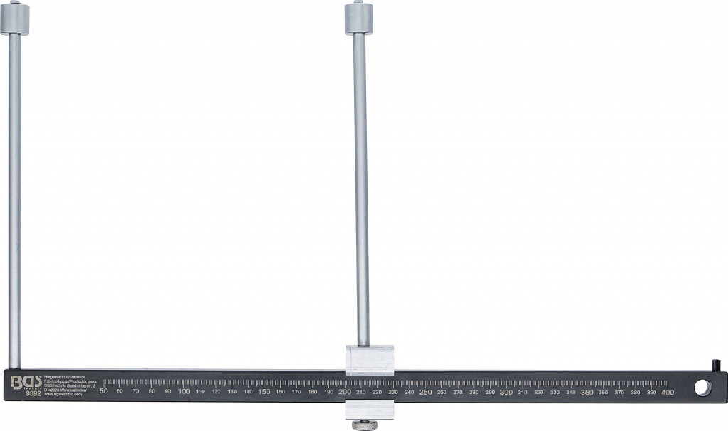 Merilo za premer zavornih diskov brez snemanja koles, omogoča hitro prepoznavo zavornega sistema in preprečuje napačno naročilo delov, univerzalno, dolžina 455 mm, merilno območje 50–400 mm.