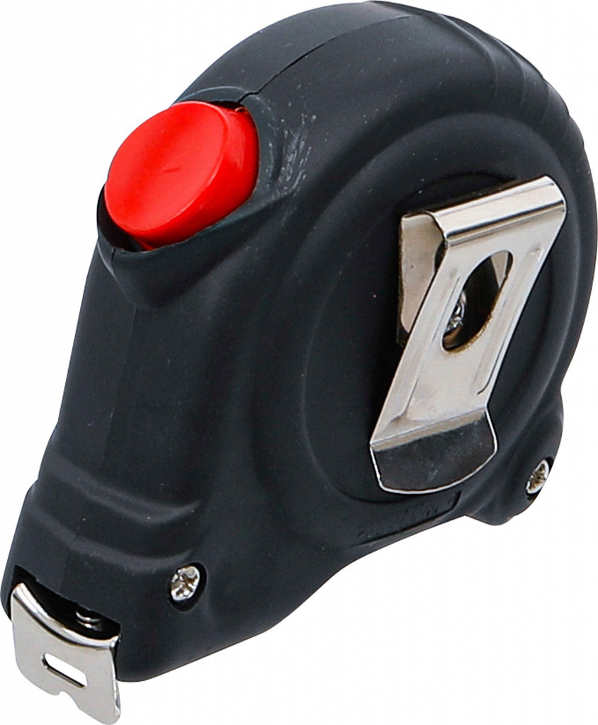 Merilni trak z avtomatskim vračanjem in funkcijo zaustavitve, sponka za pas, metrična in colska skala.