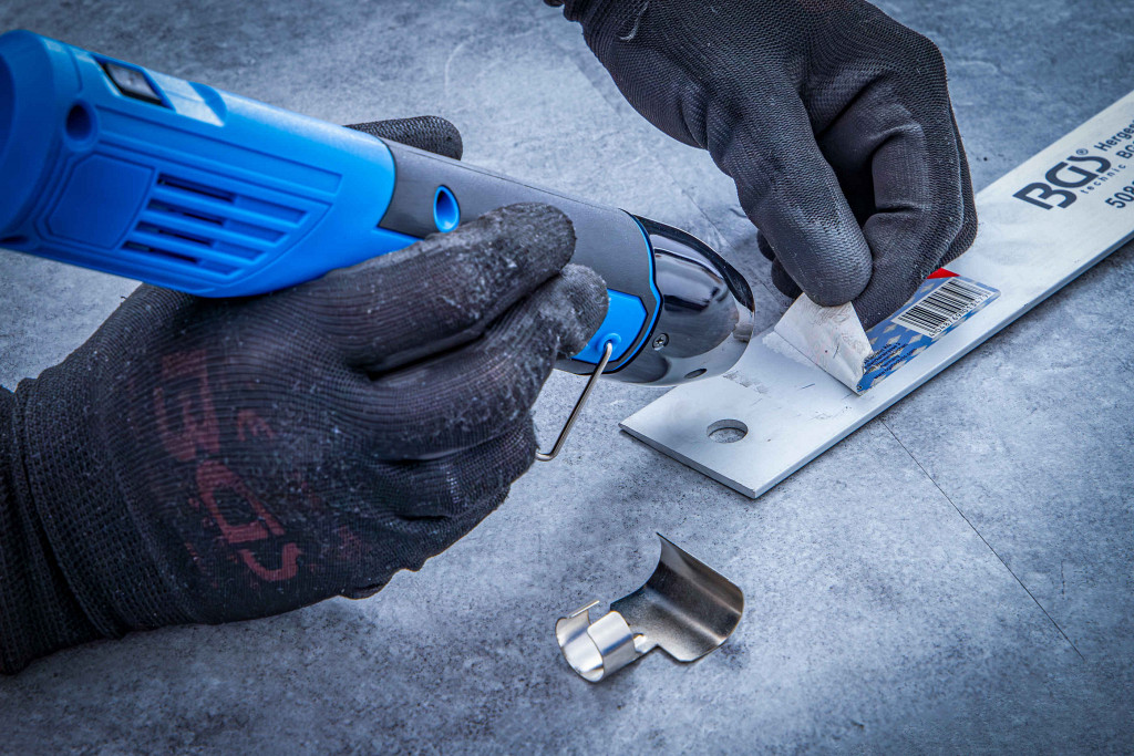 Za oslabitev lepil, odstranjevanje nalepk in upogibanje plastičnih cevi primerno tudi za krčenje folije za obrti in embalažza aktiviranje reliefnih praškastih in tekočih aplikacij ločen pritrditev za krčne cevi za električno obdelovalno zložljiv kovinski nosilec omogoča varno shranjevanje ali obešanje 2-stopenjsko nastavljivo temperaturo. delovna temperatura korak 1: 230 °C (446 °F)delovna temperatura korak 2: 400 °C (752 °F)