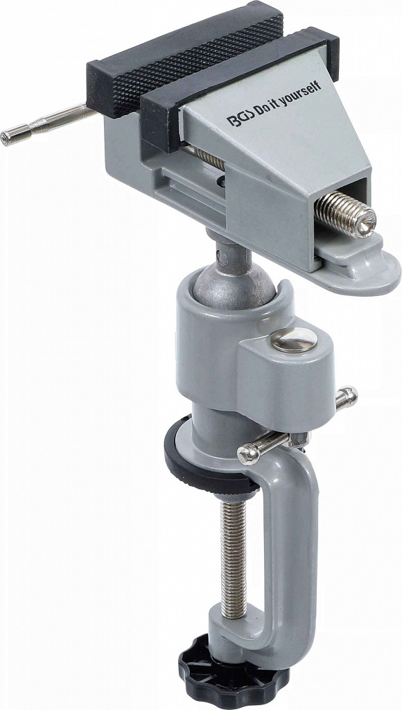 360° vrtljiv, nagib 45° / 90°, za debelino mize do 50 mm, širina čeljusti 70 mm.