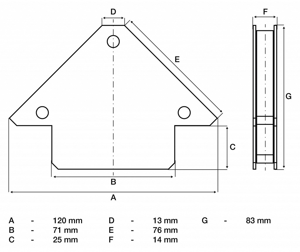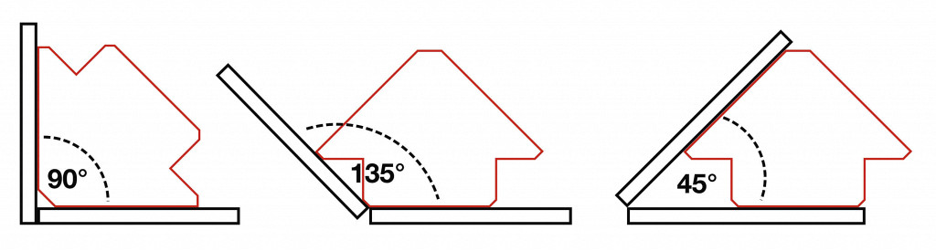 8 ločenih magnetnih površin, idealen pripomoček pri varjenju, natančna pritrditev jekla in obdelovanca, dvojna uporaba pri 45°, 90° in 135°.