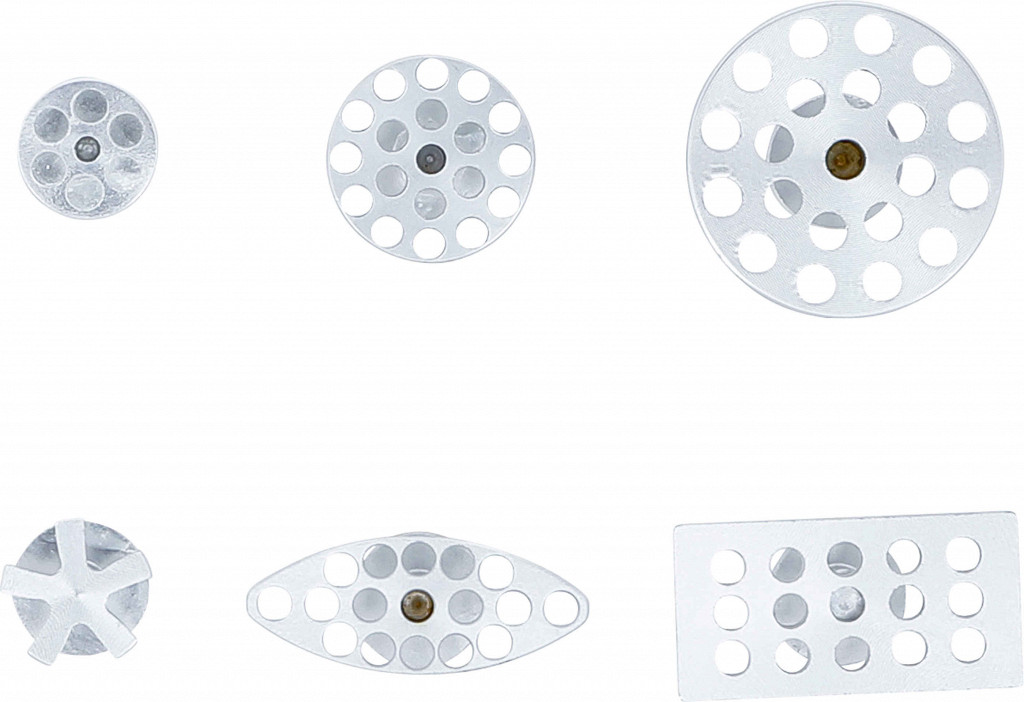 Nastavki za komplet BGS 865. Vsebina: okrogli, ovalni in pravokotni lepilni nastavki različnih velikosti.