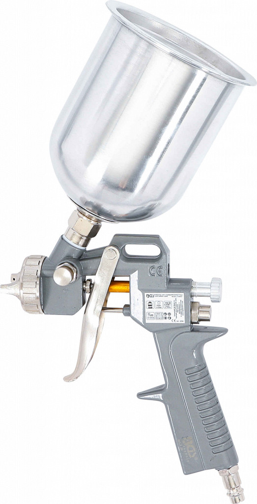 Razpršilni ventil 1,5 mm. Univerzalna glava: okrogla, široka, ploščata. Poraba zraka: pri 3 barih pretok 120 l/min, pri 5 barih pretok 200 l/min.