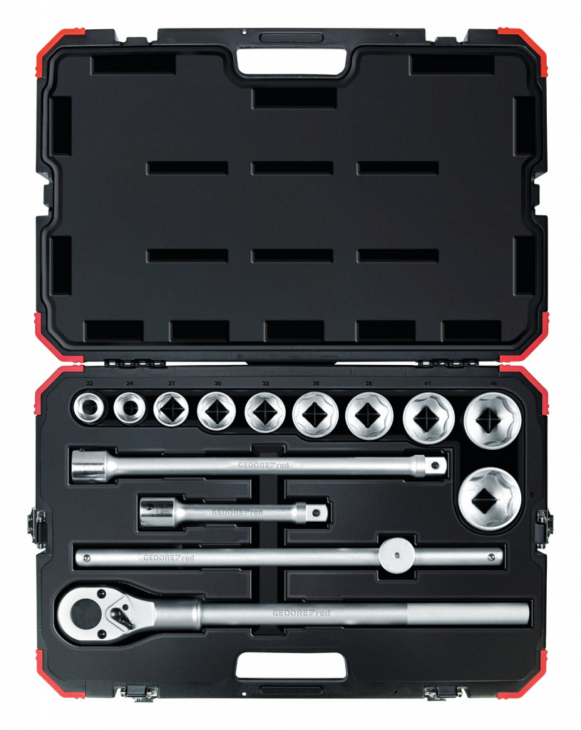Vsebina: Raglja 3/4". Ključi nasadni 6-kotni 22 24 27 30 32 36 38 41 46 50 mm Pripomočki: Podaljšek 200 mm, 400 mm. Drsna T-ročica.