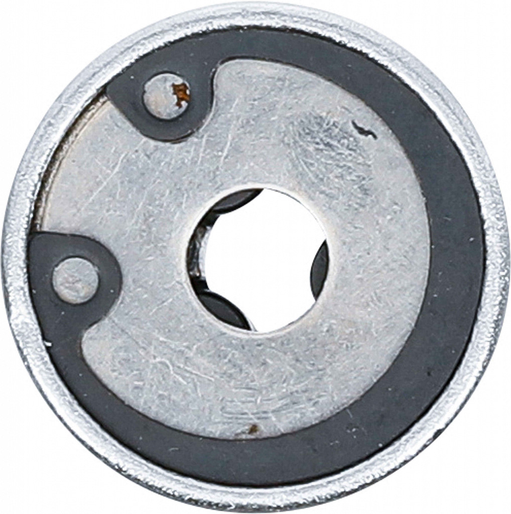 Za demontažo in montažo čepov, s 3 vpenjalnimi valjčki za držanje čepov, nazobčana površina, sprednji del visoko poliran krom, zadnji del mat kromiran, z zunanjim šestkotnikom 19 mm.