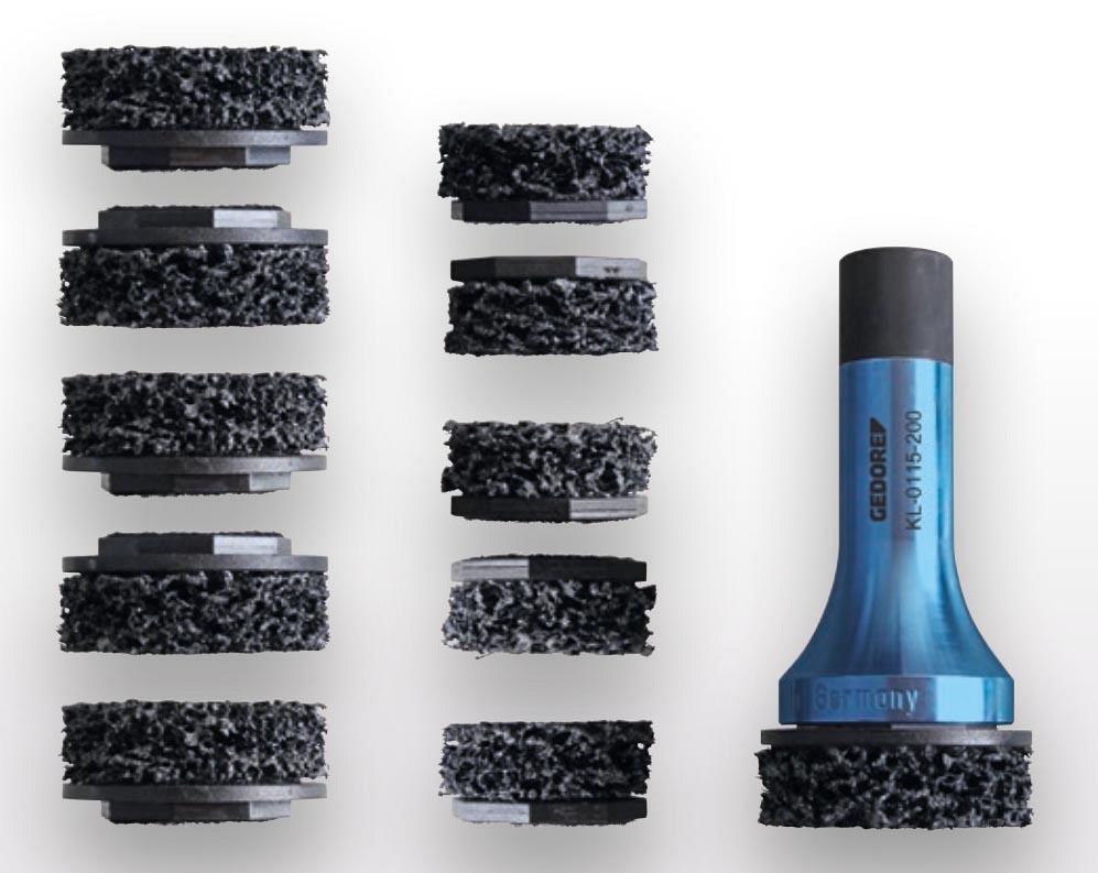 Univerzalna uporaba za pesta koles z vijaki pri osebnih in dostavnih vozilih. Za hitro čiščenje naležne površine platišča. Trdovratne ostanke korozije je mogoče enostavno odstraniti. Patentiran sistem hitre menjave za natančno centriranje med osnovnim nosilcem in brusnim kolutom.