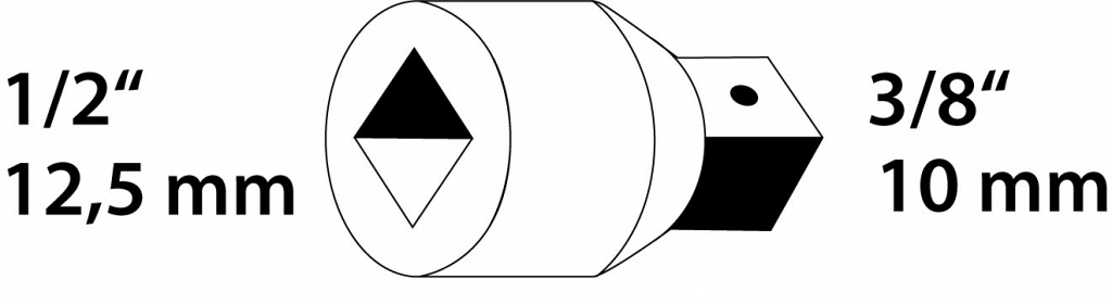 Kvadratni nastavek (ženski) : 1/2 col; Kvadratni nastavek (ženski) nominalna velikost : 12,5 mm; Kvadratni nastavek (moški) : 3/8 col; Kvadratni nastavek (moški) nominalna velikost : 10 mm; Dolžina (L, L1) : 38,5 mm; Teža : 0,062 kg; Pakiranih enot : 10 Kos