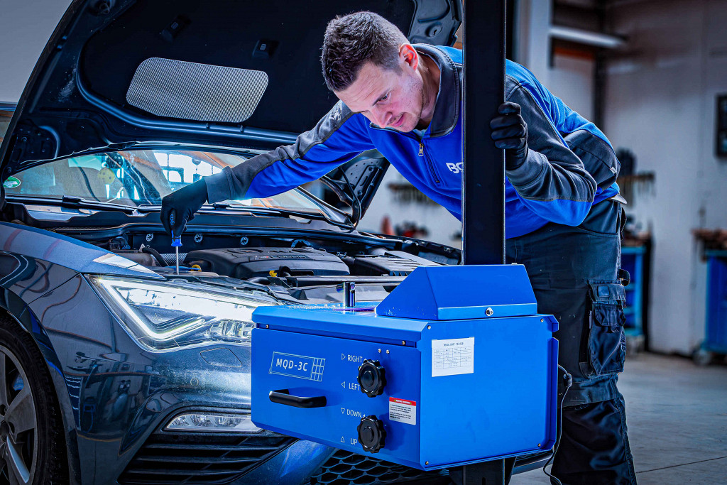 Za nastavitev kratkih in dolgih luči žarometov vozilvodoravna + navpična prilagoditeenostavno rokovanje in modularnostuporabno območje: halogenska žarnica, HID žarnica, žarnica z žarilno nitko, dolgi luči, kratki svetlobni prameni.. navpični odklon: zgoraj 350 mm pri 10 m (2°) / spodaj 525 mm pri 10 m (3°)vodoravni odklon: levo 525 mm pri 10 m (3°) / desno 525 mm pri 10 m (3°)merilna razdalja: 500 mm +/- 5 mm ali 1000 mm +/- 5 mm merilna višina: 400 - 1300 mminintenzivnost: do 120000 svečniki: +/- 12' pri 500 mm / +/- 15' pri 1000 mmtemperatura okolja: -5 - 40 °Crelativna vlažnost: <. /= 90 %napajanje: 12 V DC napajanje