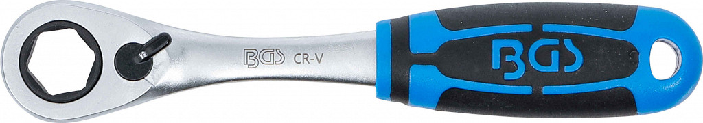Za BGS 2181; ergonomski dvokomponentni ročaj proti zdrsu, izhodni profil šestkotnik, 72 zob v glavi raglje, površina satinirano kromirana.