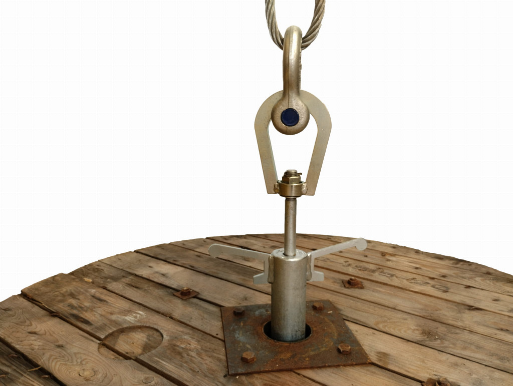 Možnost odvijanja kabla z bobna - rotacijsko gibanje. Uporaba: leseni bobni s kabli. Največja teža bobna 2.000 kg / 5.000 kg. Masiven kavelj, vstavljen v...