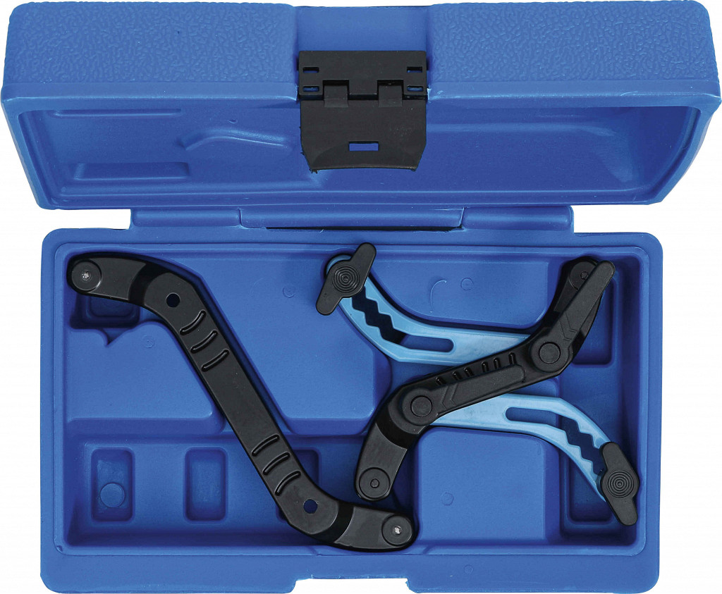 Univerzalno orodje za blokado odmičnih gredi pri bencinskih in dizelskih DOHC motorjih, s strjevalnimi zatiči iz kaljenega jekla.