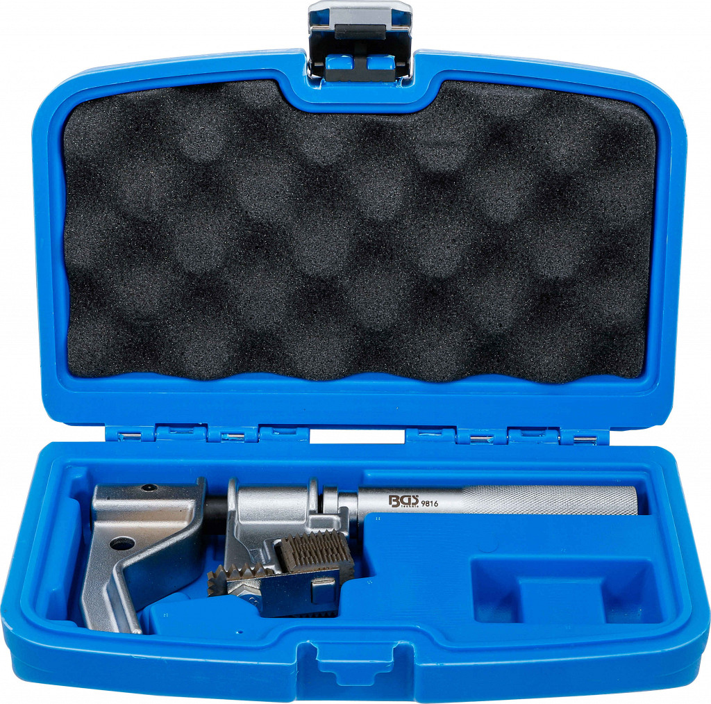 Orodje za obnavljanje in čiščenje zunanjih navojev na osnih ceveh, drogih in krmilnih palicah, brez potrebe po različnih navojnih svedrih, z enostavno menjavo vložkov, primerno za metrične in colske desne ter leve navoje, brez poškodb navoja zaradi mehkih vodil, nastavljivo brezstopenjsko. Vsebina: navojni obnovitelj z nastavki za metrične korake 1.0–1.75 mm, metrične 2.0–3.5 mm ter colske korake 4–7, 7.5–11.5, 8–14, 16–24.