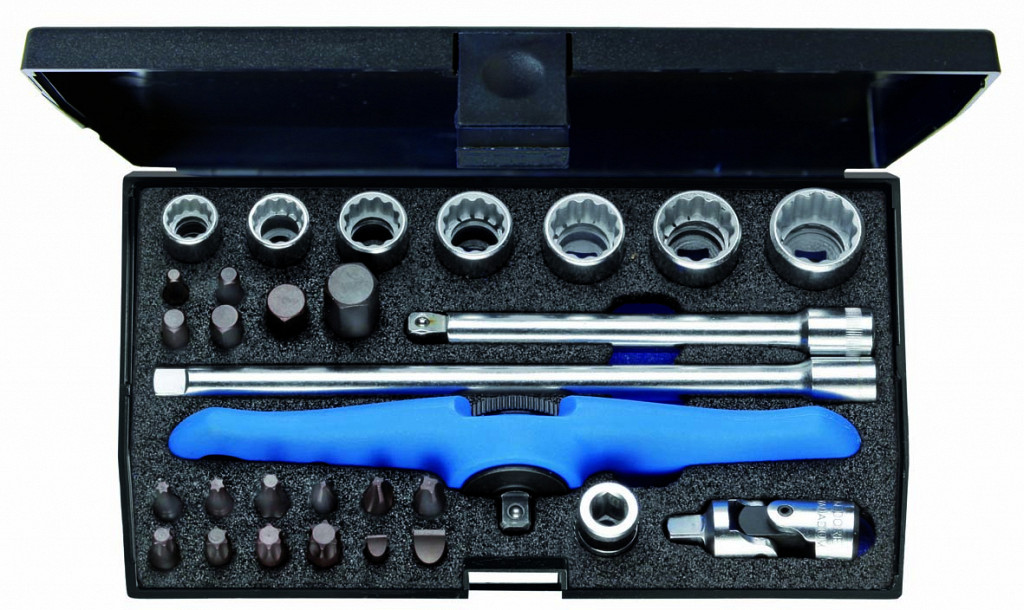 Komplet orodja za nujen primere pri motornih kolesih. V plastični škatli Dimenzije: 160 x 95 x 38 mm.