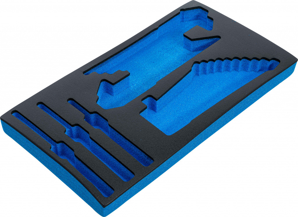 Pladenj za orodje iz visoko odporne pene. Primeren za predale mobilnega vozička BGS 2002 in zgornjega trdega kovčka z 2 predaloma BGS 2002-3. Primeren za BGS 2002-8.