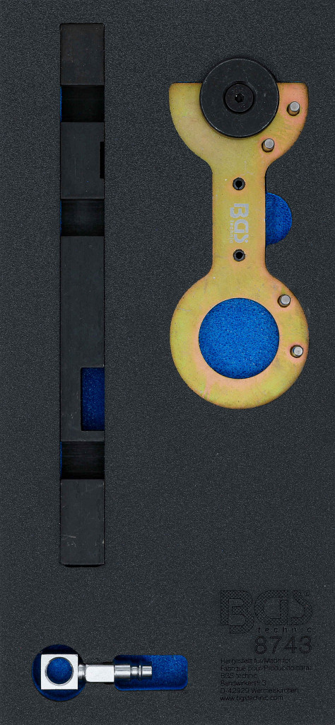 Set orodij za nastavitev Vanos enot na motorjih BMW M52TU / M54 / M56, vključno z orodjem za nastavitev Vanosa, priključkom za tlak in pripomočkom za montažo...