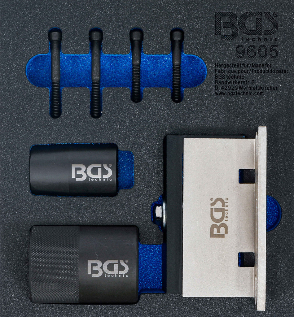Set za nastavitev motorjev Ford in Volvo 2.5 Duratec Turbo, vsebuje držalo za odmično gred, orodje za vgradnjo tesnila ročične gredi in vodilo za tesnilo.