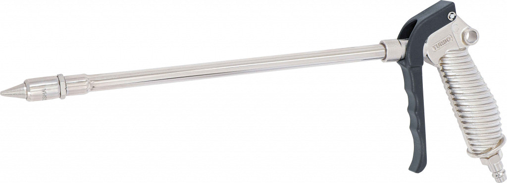 Pihalna pištola z dolgo kovinsko cevjo za vpihovanje zraka v ozke in težko dostopne prostore, z venturi šobo za večji pretok zraka.