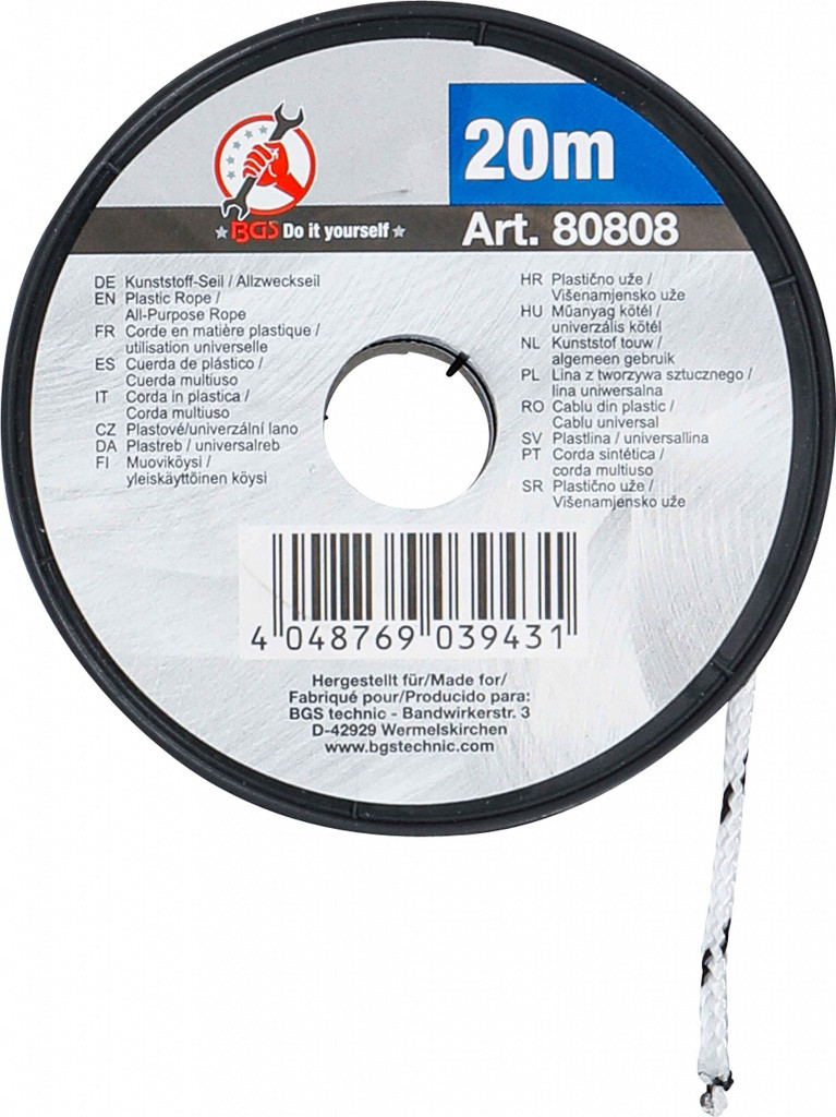 Bruto teža: 100,25 g; Premer: 3 mm; Barva: črna / bela; Dolžina: 20 mm; Material: polipropilen (PP); nosilnost: 30 kg
