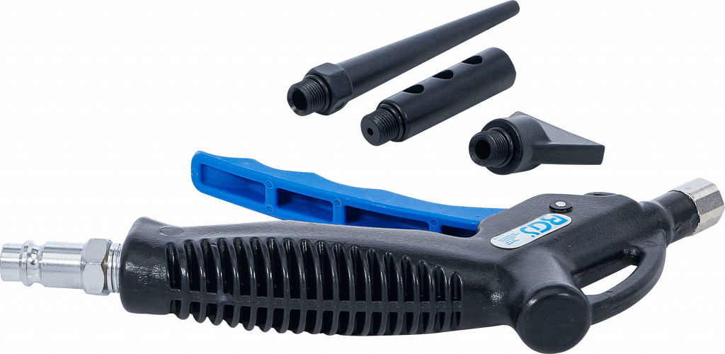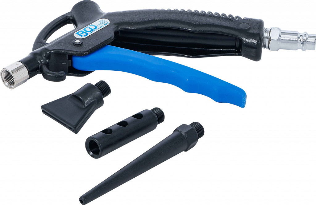 Pihalna pištola za čiščenje, sušenje ipd., z 3 dodatnimi šobami (točkovna, okrogla, široka), ohišje iz najlona, priklop 6,3 mm (1/4").