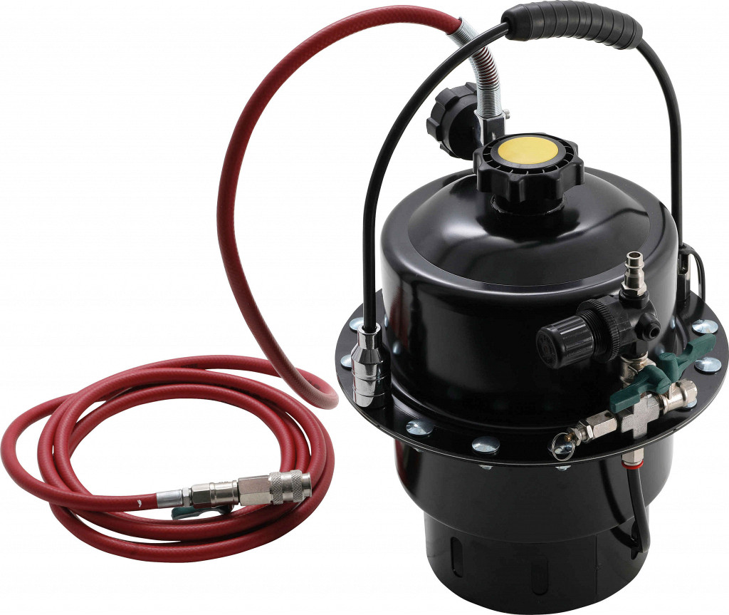 Naprava za zračenje zavor in sklopke na stisnjen zrak, z ločilno membrano, regulatorjem tlaka, merilnikom, 5-l rezervoarjem in adapterjem E20.