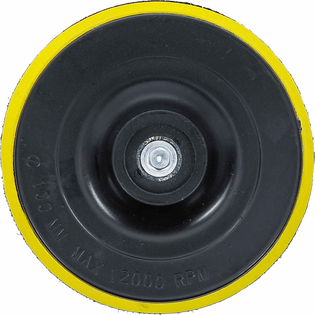 Brusilna plošča s plastjo pene kot dušilna komponenta za udobno delo s kaveljko in zanko za poliranje plošč in gobic se lahko uporablja z električnim vrtalnikom ali akumulatorskim izvijačem s funkcijo vrtanjazunanja šesterokotna jeklena gred, ponikljana