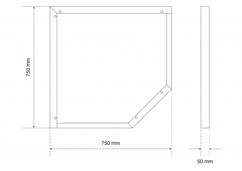 Širina: 750 mm; Višina: 50 mm; Dolžina: 750 mm; Površinska obdelava: prašno lakirana
