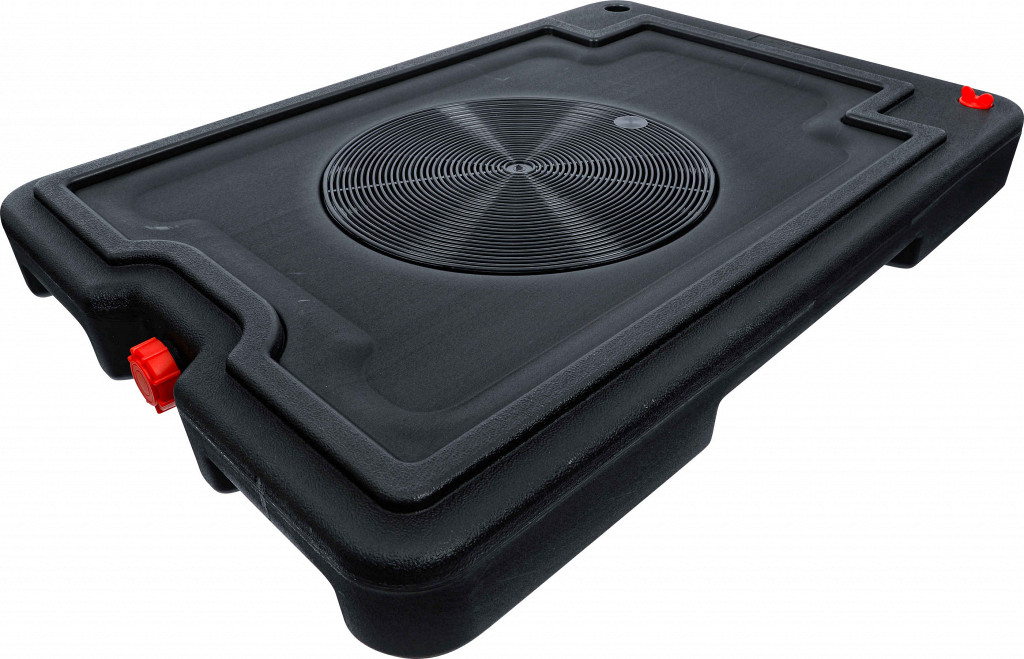 Nizka posoda za odvajanje tekočin v vozilih. Prostornina 20 l, dimenzije 850 x 600 mm, višina 100 mm. Mobilna izvedba s 4 kolesi.