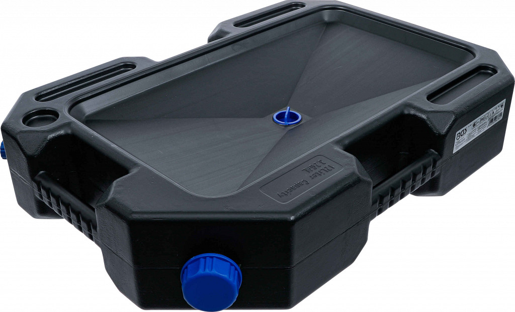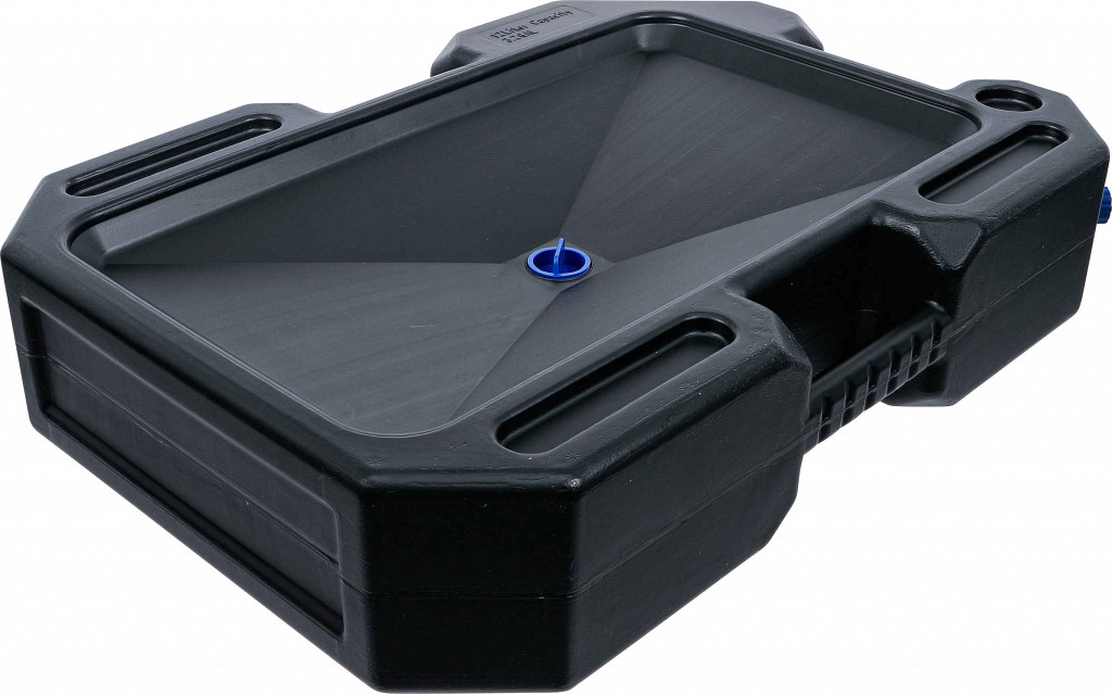 Univerzalno uporabnavelika zmogljivostkombinacija večnamenskega pladnja in zbirnega transportnega posodepraktična polnilna šoba za priročno prevrnitev ali dekantiranje tekočega vijačnega priključka s tesnilnim obročem za zavarovan transportni ročaji na sprednji in zadnji strani za enostavno rokovanje in enostaven prevoz se lahko uporabljajo kot oljna kad, uhajalna kad v primeru puščanja tekočin v avtomobilski industriji ter delavnica in odporna na kisline