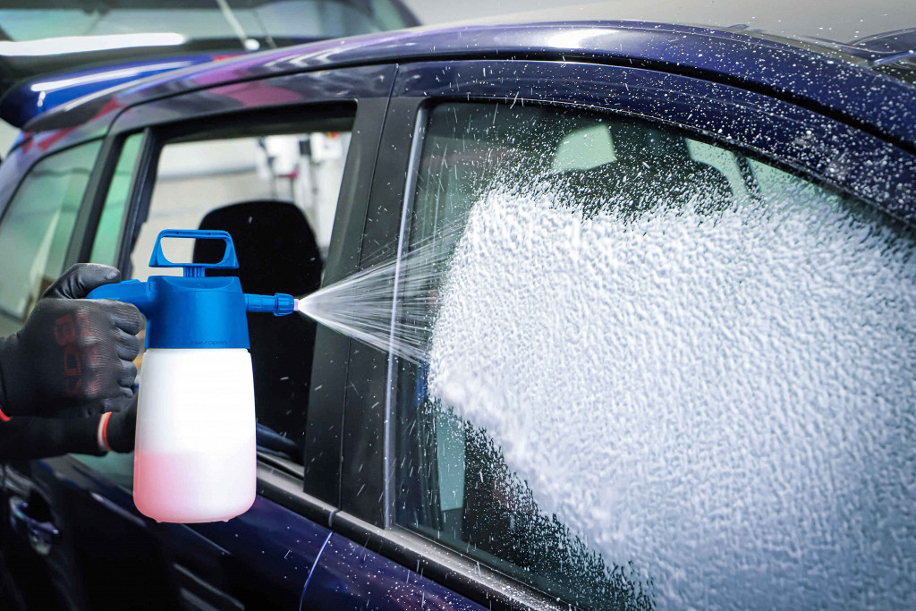 Razpršilec za čiščenje in dezinfekcijo površin, vozil in notranjosti; primerno za nevtralna, kisla in alkalna čistila; posoda 0,75 l; varnostni ventil 2.5 bara; priloženi filtri in šobe za mokro/suho peno.