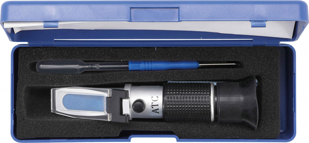 Optični tester z različnimi funkcijami; merjenje gostote akumulatorske kisline: 1.1 do 1.4 kg/l; merjenje proti zmrzovanju v hladilni tekočini (etilen in propilen): 0 ° do -50 °C; merjenje tekočine za pranje stekel na osnovi etanola in alkohola (SRF1): 0 ° do -40 °C; merjenje sečnine AdBlue® (AUS32); nastavljiv okular; natančnost +/- 5 %; v škatli za shranjevanje; komplet vsebuje: refraktometer, pipeto, izvijač za nastavitev, mikro krpico