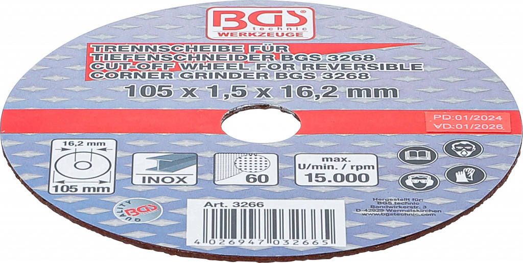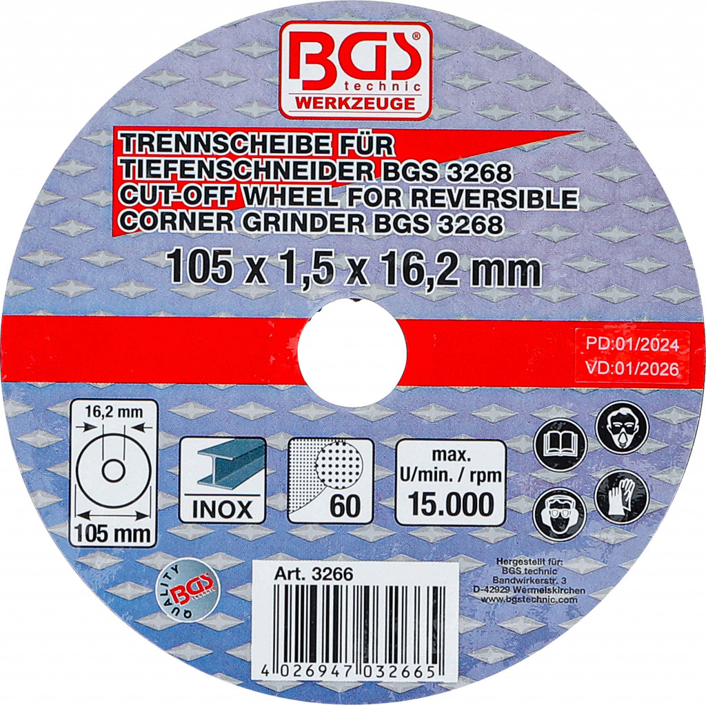 Rezalni disk za BGS obratni kotni brusilnik | Ø 105 x 1.5 x