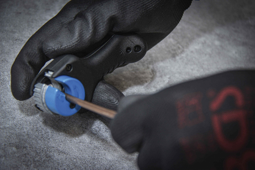Rezalnik zavornih cevi Ø 4,75 mm (3/16"), samodejno nastavljiv, primeren za delo v ozkih prostorih, z ragljo in nastavitvijo sile reza.