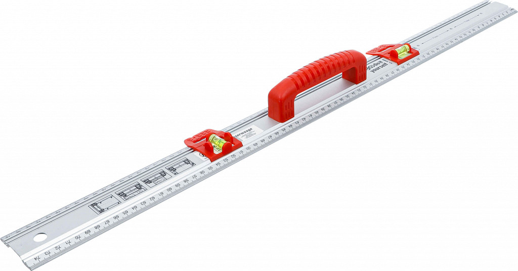 Univerzalno merilo z libelo, aluminijasta konstrukcija, perforacija 71 mm, pomične označevalne igle, za natančno obešanje in označevanje, dolžina 75 cm