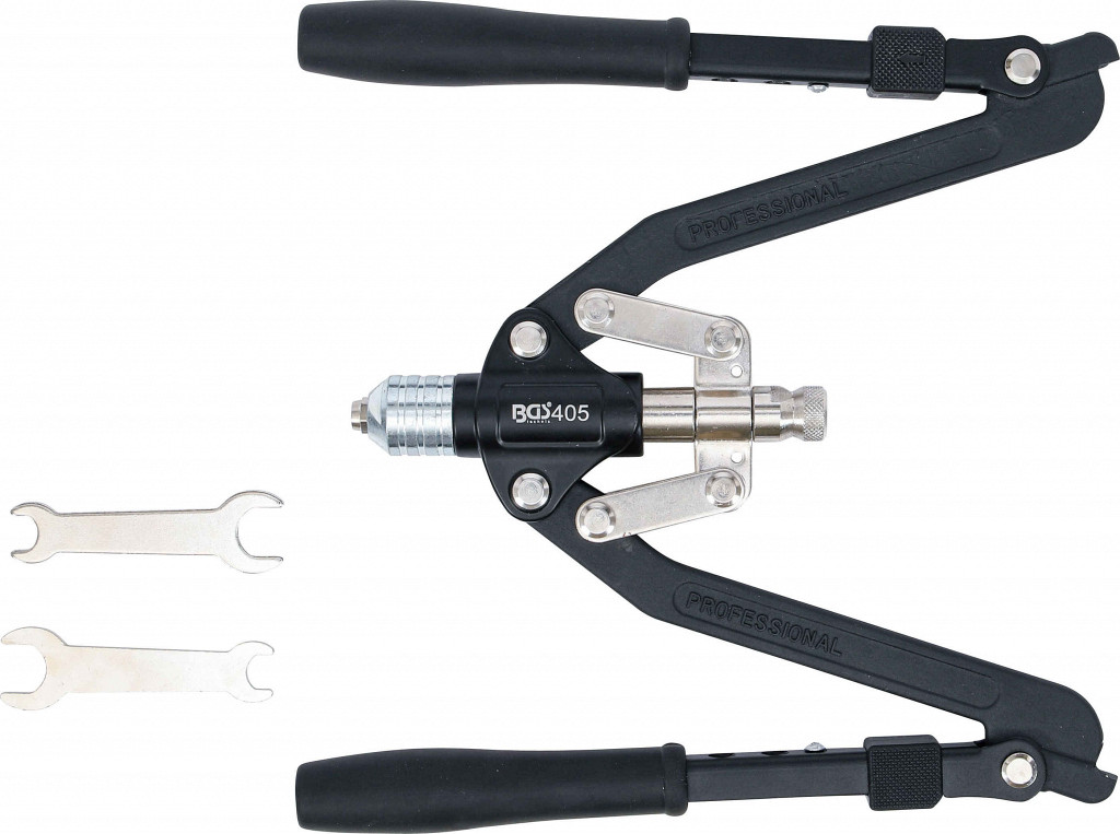 Klešče za zakovice iz aluminija in jekla. Ročaji so zložljivi.