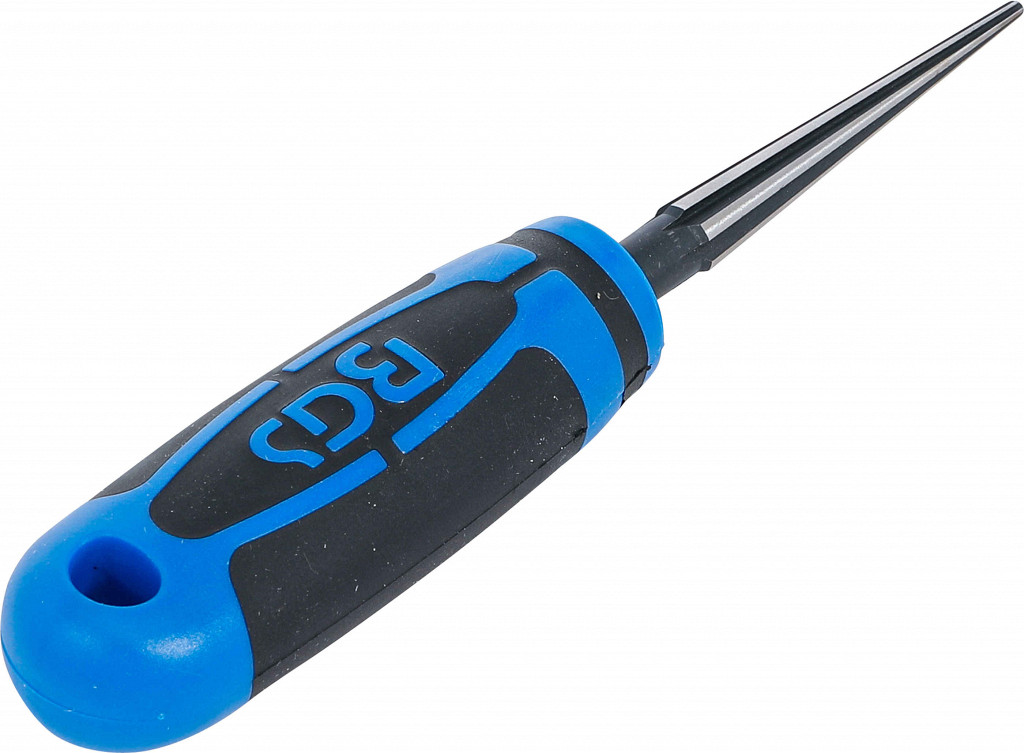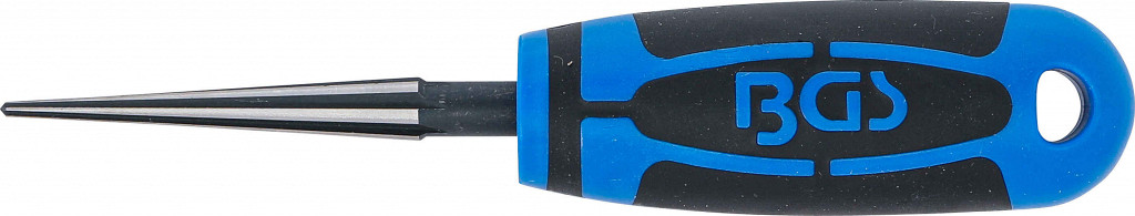 Orodje za dodelavo ali popravilo lukenj v pločevini in drugih materialih, z nedrsečim dvokomponentnim ročajem.