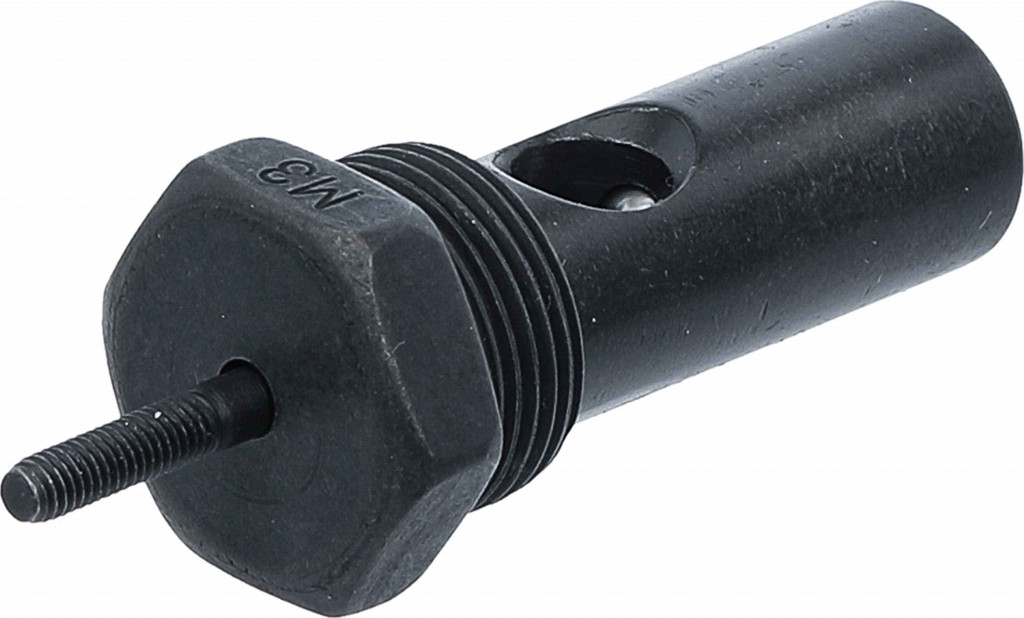 Klešče za vijačne matice M3–M8, z dvema ročicama in ergonomskimi ročaji; v kompletu nastavki za izvrtine Ø 5,0–11,0 mm in ključ za montažo.
