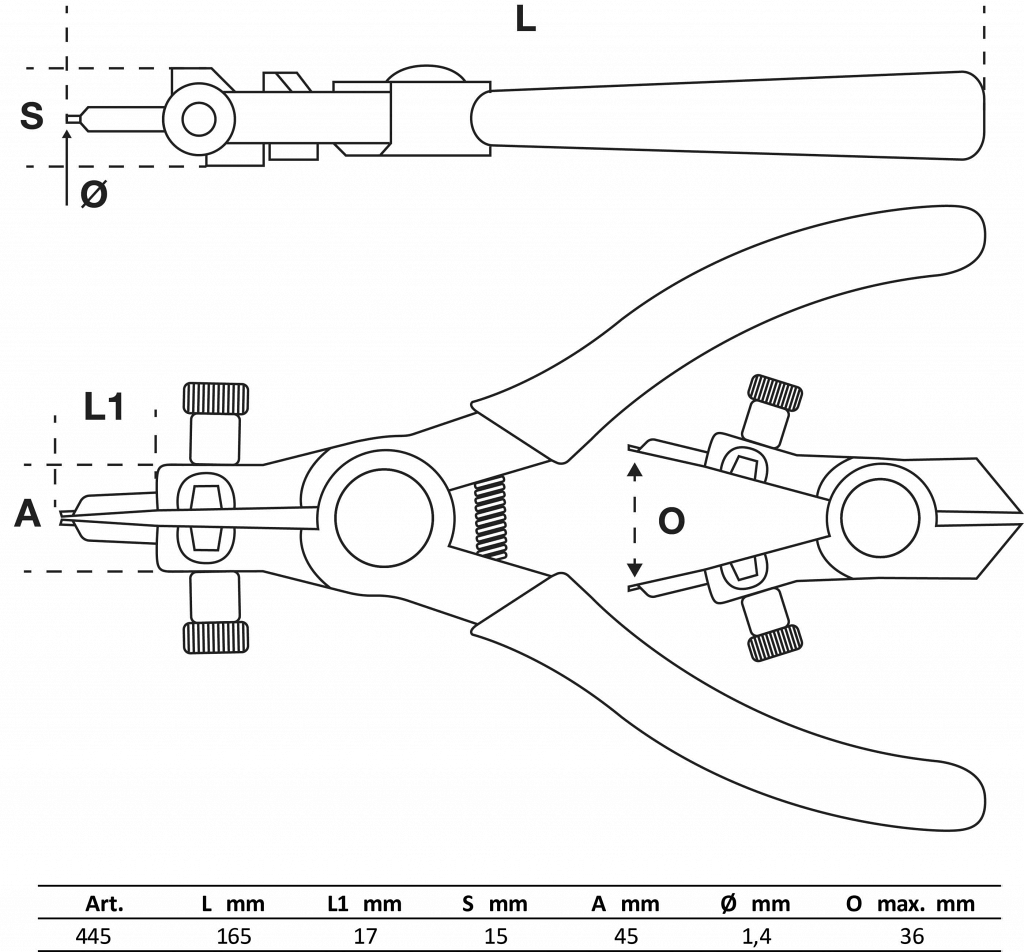Seger klešče nastavkljive za varnostne obroče 165 mm | za zunanje |