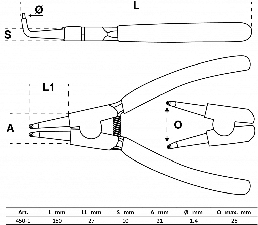 Seger klešče za varnostne obroče 150 mm | kotne/zunanje |