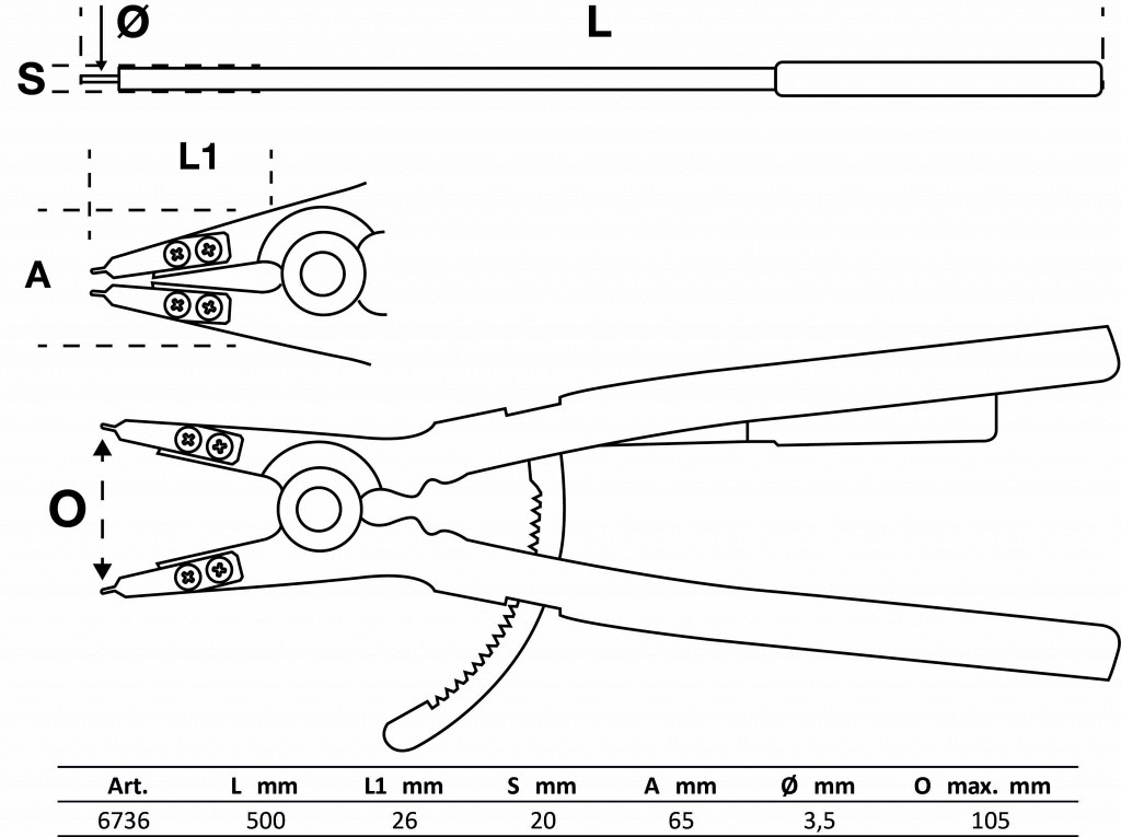 | Seger klešče za varnostne obroče 500 mm | ravne/zunanje |