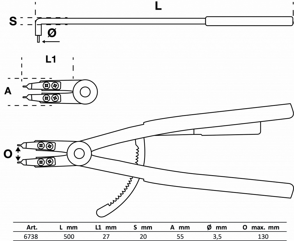 | Seger klešče za varnostne obroče 500 mm | kotne/zunanje |