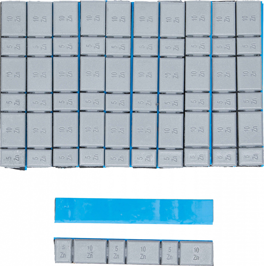 Komplet uteži za uravnoteženje aluminijastih platišč, uporaba z BGS kleščami in strgalom, 100 kosov po 45 g, porazdelitev 5–10–5–10–5–10 g, temperaturno območje –20 do +70 °C.