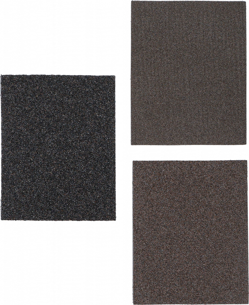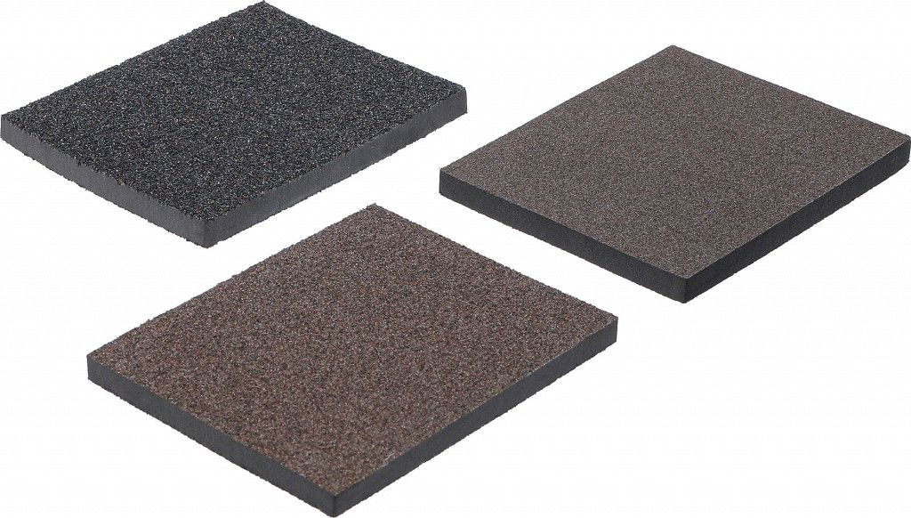 Univerzalno uporabne brusilne gobice različnih kakovosti zrnaprimerno za odstranjevanje raziglev in površinsko brušenje lesa, kovine in lakatudi za mokro brušenje kratkoročnonepogrešljivo orodje za vsakega obrtnika in domačega mojstra, ki ceni natančno in učinkovito obdelavo površinvisoko fleksibilno abrazivno orodje, ki je kot nalašč za ročno brušenjez mehkim penastim jedrom za enakomerno porazdelitev pritiska in visoko prožnostzato je še posebej primeren za uporabo v težko dostopnih območjaenakomerna površinska struktura.. stopnja finosti: groba, srednja, finaštevilo premazanih površin: 2 število spužv: 3