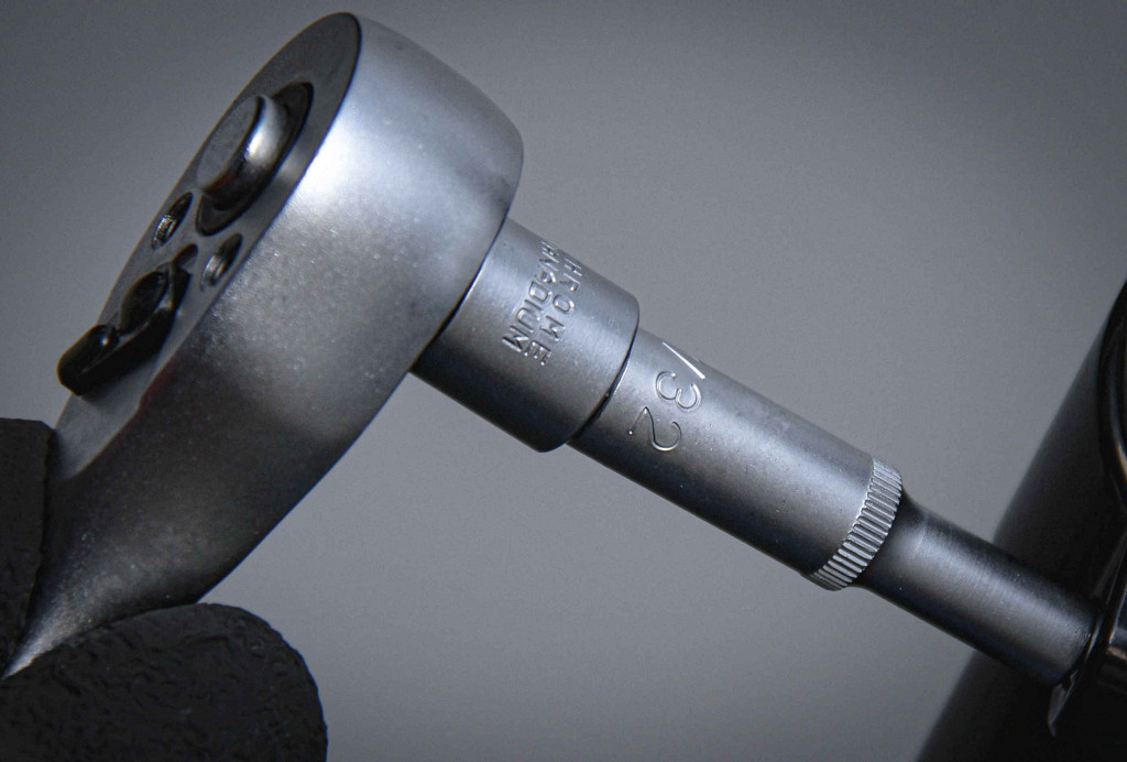 Komplet adapterjev za kvadratne pogone, vključno z notranji/zunanji kvadrat 1/4", 3/8" in 1/2", za uporabo z ragljami in nasadnimi ključi.