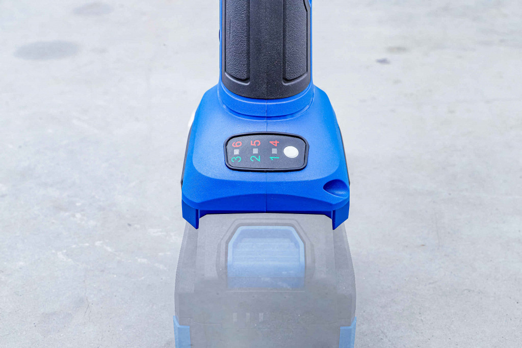 Akumulatorski polirno-brusilni stroj set 18 V z brezkrtačnim motorjem, 6-stopenjsko regulacijo hitrosti (0–2200 vrt/min), penastim vmesnikom za udobno delo, volnenim polirnim nastavkom in brusilno ploščo; priložena litij-ionska baterija 4,0 Ah, hitri polnilec 4,0 A in univerzalna torba za orodje.