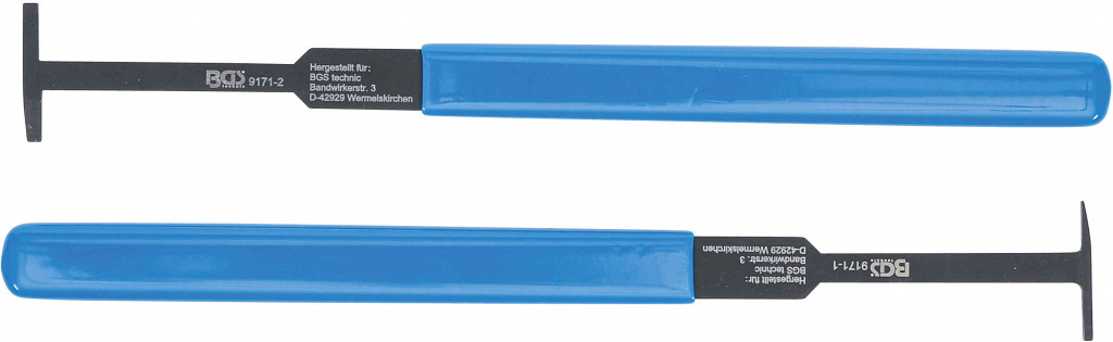 Set za čiščenje utorov na čeljustih zavor. Vsebuje 2 orodji z različnimi oblikami konic, dolžina 200 mm.